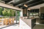 Dehors, le jardin luxuriant enveloppe la maison en toute intimité, créant une oasis inspirée de la jungle qui vous invite à vous détendre et à se recharger. L'espace de vie ouvert s'écoule sans effort dans l'espace extérieur, offrant une vie intérieure-extérieure transparente. Que vous profitiez d'une soirée tranquille ou d'un hébergement, le barbecue extérieur offre un cadre parfait pour des rassemblements mémorables.