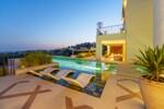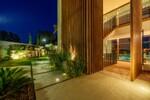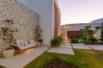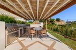 À l'extérieur, la villa est tout aussi impressionnante. Une piscine d'eau salée est entourée d'une terrasse ensoleillée orientée sud, d'un salon extérieur et d'une cuisine barbecue élégante. Ces espaces sont idéaux pour profiter du climat méditerranéen, que ce soit pour se détendre en journée ou organiser des soirées sous les étoiles. Les jardins tropicaux à faible entretien créent une atmosphère luxuriante et paisible toute l'année.