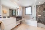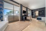 L’étage supérieur est dédié à la majestueuse suite parentale, qui dispose d’une terrasse privée avec une vue imprenable sur la mer, ainsi que de trois autres chambres avec salle de bains privative. Au niveau inférieur, un appartement privé complète les prestations de loisirs de la villa, comprenant une salle de sport, un sauna, une cave à vin, une salle de cinéma et de vastes espaces de rangement.