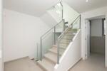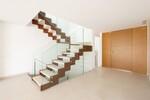 La propriété se distingue par ses lignes architecturales épurées et son agencement spacieux. Dès l'entrée, un hall accueillant mène à un salon lumineux avec des plafonds de plus de trois mètres de hauteur, créant une impression immédiate d'espace et d'ouverture. Le séjour s’intègre harmonieusement à la salle à manger ainsi qu’à une cuisine ouverte de designer équipée d’appareils électroménagers haut de gamme de la marque NEFF. Depuis la cuisine, on accède à une petite terrasse, tandis que le salon s’ouvre directement sur une grande terrasse principale et un jardin privé orienté sud, idéals pour les repas en plein air, la détente et la réception d’invités. Des toilettes invités complètent ce niveau.
