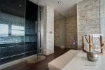 In het nachtgedeelte is er ook een tweepersoonsslaapkamer, helemaal buiten, en een tweede badkamer met douche.