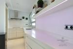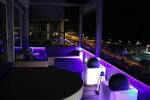 Vanuit dezelfde hal hebben we toegang tot de ruime woon-eetkamer, volledig buiten, tot een onafhankelijke buitenkeuken en tot een indrukwekkend terras met uitzicht op de zee en de stad.