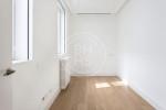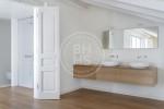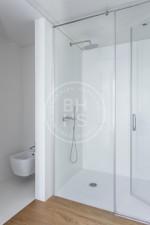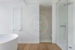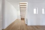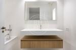 As a singularity this flat has an interior design concept where you can see a clear separation between the old and the new. On the outside, the aim has been to recover the past, maintaining the glass windows, the hydraulic floors and the mouldings on the ceilings, allowing us to travel back a century to the origins of Modernism. The interior of the house and the first floor incorporate contemporary materials and elements that are just as refined, but which are serene, minimalist and silent. In this sense, the two main interventions were the oak wood floors and the application of white as the only colour on walls, ceilings, carpentry and in the floor and wall coverings of the bathrooms.