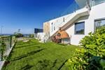 De buitenkant beschikt over schone architectonische lijnen, natuursteen afwerkingen, en grote vloer-tot-plafond ramen die het interieur overspoelen met natuurlijk licht en kader uitzicht op de zee en de bergen. Gelegen in een rustige omgeving, biedt de villa een aangenaam gevoel van privacy. De begane grond heeft twee slaapkamers, elk met een eigen badkamer, uitzicht op zee en directe toegang tot de tuin. Dit niveau beschikt ook over een veelzijdige kamer die ideaal is voor gebruik als fitnessruimte, opslagruimte, hobbyruimte en een aparte wasruimte. Er is ook een garage met ruimte voor 4 voertuigen.