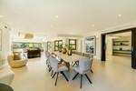 De accommodatie beschikt over vijf rustige slaapkamers en vijf badkamers, met twee grote en-suite kamers met directe toegang tot de tuin. Extra interieur hoogtepunten bestaan uit twee uitgestrekte lounges, een gezellige woonbibliotheek, en een speciale kantoorruimte. Praktische kenmerken zijn onder meer een garage met maximaal vier voertuigen, een waterreservoir, Lutron verlichting, en veilige Technal ramen die een mix van luxe, comfort en gemoedsrust leveren.