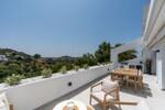 De lichte master suite biedt directe toegang tot het terras en een prachtig uitzicht op zee. Twee extra gastenkamers zijn elk voorzien van een eigen badkamer, aangevuld met een gastentoilet en een afgesloten bijkeuken, zodat er voldoende ruimte en privacy is.