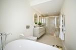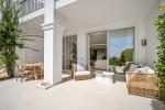 De open keuken op maat stroomt naadloos in een uitzonderlijk ruime woon- en eetkamer, die uitkomt op een overdekt terras dat leidt naar de gemeenschappelijke tuinen. Vanaf hier kunt u genieten van een prachtig uitzicht op het zuidoosten richting de zee en de bergen.