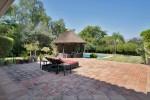 De woning beschikt over drie luxe slaapkamers met en-suite badkamers en een extra gastentoilet, elk ontworpen met comfort en stijl in gedachten. De lichte interieurs vloeien naadloos over in uitgestrekte terrassen en de omliggende tuinen, waardoor een ideale setting ontstaat voor het hele jaar door binnen-buiten leven.