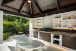 De buitenruimtes zijn een belangrijk kenmerk van het pand. De aangelegde tuin is ontworpen om een groene, afgeschermde omgeving te bieden met meerdere buitenleefzones, waaronder loungegedeeltes, een barbecueplek, een groot zwembad en een jacuzzi. Een buitengym voegt een extra leefstijlcomponent toe, waardoor welzijn en activiteit in een natuurlijke omgeving mogelijk zijn.