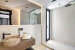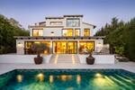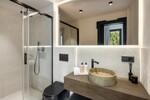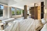 De villa beschikt over vijf ruime slaapkamers met eigen badkamer en zes badkamers, allemaal ontworpen met een consequente minimalistische esthetiek die strakke architectonische lijnen combineert met natuurlijke materialen en warme, neutrale tinten. De hoofdwoonruimte vormt het hart van het huis en is ontworpen als een open, lichte ruimte waar de woonkamer, eetkamer en keuken naadloos in elkaar overlopen. Vloer-tot-plafond glazen deuren openen direct naar de tuin en terrassen, waardoor er een natuurlijke overgang ontstaat tussen binnen- en buitenleven en het daglicht vrij door het hele huis kan stromen.