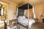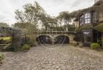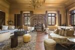 To the left is a porch with a carpanel arch, with a sunken ceiling, decorated with mosaics representing exotic birds.