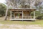 The building has a rectangular floor plan and an enclosed garden with rear porches.