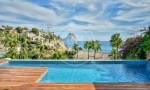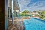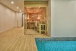 On the main floor we find a large fully equipped kitchen, the living / dining room opens through large windows to the infinity pool and relaxation area with Jacuzzi