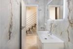 På bottenvåningen är huvudingången, vilket leder till ett ljust dagtidsområde med ett rymligt vardagsrum, idealiskt för familjesammankomster, ett modernt öppet konceptkök och en gästtoalett. Det första våningen rymmer sovrummet med ett badrum och panoramautsikt över havet, samt två ytterligare sovrum som delar ett badrum. Översta våningen erbjuder ett fjärde sovrum med ett badrum och direkt tillgång till den stora terrassen, ett unikt utomhusutrymme perfekt för att njuta av solen, värd måltider eller koppla av med öppen utsikt.
