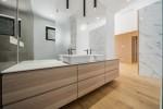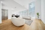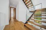 Inuti är villan en fristad av modern elegans och funktionalitet. Det första våningen välkomnar dig med en rymlig entréhallen som leder till ett öppet plan bostadsområde, där 4,6 meter tak och naturlig ek parkettgolv skapar en atmosfär av värme och sofistikering. Köket, färdigt med top-of-the-line Bosch-apparater, är utformat för att inspirera kulinarisk kreativitet, blanda sömlöst med det eleganta vardags- och matområdet. Också på denna nivå är ett generöst storlek sovrum med en walk-in garderob och ett privat badrum, som erbjuder komfort och integritet.