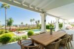 Upplev raffinerad Medelhavs lyx i denna vackert utformade villa ligger i det prestigefyllda området Nueva Andalucía, Marbella. Med fem en-suite sovrum och panoramautsikt över havet erbjuder denna fullt möblerade bostad enkel elegans och komfort över tre noggrant utformade nivåer.