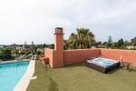 Rymlig takvåning med ett stort solarium i Alhambra del Golf, bara 10 minuters promenad till stranden och mycket nära Guadalmina golfbana och dess kommersiella centrum. Denna fastighet består på huvudnivå: vardagsrum / matsal med spis och tillgång till en stor terrass; separat kök med separata verktygsrum; 4 en-suite sovrum; gästtoalett. På övervåningen: mastersvit med tillgång till en stor 162-m2 terrass med gazebo. Top våning: 85-m2 solarium med plunge pool och panoramautsikt. Komplexet är gated, med pooler och grönområden och. Det finns en paddle klubb bredvid det. Fastigheten kommer med två parkeringsplatser med motsvarande förvaringsrum.