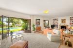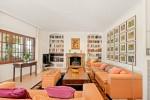 Det generösa vardagsrummet är inbjudande och uppdelat i två bekväma sällskapsytor. Den ena är centrerad kring en öppen spis med marmorram, medan den andra öppnar upp mot en stor täckt veranda, vilket skapar en sömlös övergång mellan inomhus- och utomhusliv. Terrassen är genomtänkt utformad med flera olika miljöer, inklusive en skuggad matplats med utsikt över palmer och en lounge mot havet – perfekt för att njuta av solnedgångar året om.