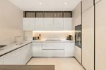 Det moderna köket i öppen planlösning är stilrent och mycket funktionellt, centrerat kring en iögonfallande köksö och färdigställt med material av högsta kvalitet. På huvudsakliga våningsplanet finns även en rymlig huvudsovrumssvit med direkt tillgång till terrassen, två ytterligare sovrum med egna badrum samt en gästtoalett, vilket säkerställer både komfort och avskildhet för boende och gäster.