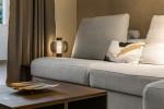 Lägenheten har nyligen renoverats och presenterar ett ljust och inbjudande vardagsrum och matplats i öppen planlösning, där naturligt ljus flödar obehindrat genom hela utrymmet. Stora öppningar leder direkt ut till en täckt privat terrass, vilket skapar en sömlös övergång mellan inomhus och utomhus samt erbjuder rogivande utsikt över de vackert anlagda gemensamma trädgårdarna och poolen.