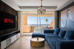 Lägenheten har tre sovrum och tre badrum, med en planlösning utformad för att maximera ljus, utsikt och funktionalitet. Som en hörnenhet får den solljus hela dagen, från morgon till kväll, vilket ökar känslan av rymd och komfort. Alla sovrum har direkt tillgång till terrassen, där panoramautsikten över golfbanan och det omgivande landskapet skapar en verkligt imponerande bakgrund. Två av sovrummen har egna badrum, inklusive master-sviten som även har en klädkammare.