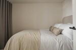 Lägenheten har en ljus och öppen planlösning där ett modernt kök med central ö smälter samman med vardagsrummet och skapar en bekväm och funktionell yta. Stora skjutdörrar förbinder interiören direkt med en täckt terrass och privat trädgård, vilket möjliggör en smidig inomhus- och utomhuslivsstil.